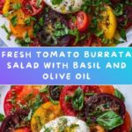 A refreshing and elegant Fresh Tomato Burrata Salad featuring ripe heirloom and cherry tomatoes, creamy burrata cheese, fresh basil, and a drizzle of high-quality extra virgin olive oil. This no-cook salad highlights simple, fresh ingredients perfect for a light appetizer or side dish.