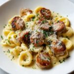 This Garlic Butter Sausage with Creamy Parmesan Pasta is a quick and indulgent meal perfect for weeknight dinners. Juicy Italian sausages are sautéed with fresh garlic and butter, then combined with a luscious parmesan cream sauce and tender pasta. Finished with fresh parsley and a dash of seasoning, this dish offers rich flavors and comforting textures in just 30 minutes.