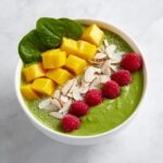This vibrant Green Mango Smoothie Bowl is a refreshing and nutritious tropical breakfast or snack option. Blended with ripe green mangoes, banana, and creamy coconut milk, and boosted with fresh spinach or kale, it’s naturally sweetened with honey or maple syrup and topped with crunchy granola, nuts, and seeds for texture and added nutrition. Ready in just 10 minutes, it’s perfect for a quick, wholesome start to your day.