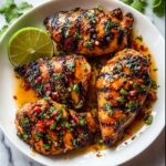 This Grilled Honey Chili Lime Cilantro Chicken recipe features juicy chicken breasts marinated in a zesty blend of honey, lime juice, chili powder, and fresh cilantro. Grilled to perfection, it offers a perfect balance of sweet, tangy, and mildly spicy flavors making it an ideal main dish for easy weeknight dinners or summer cookouts.