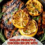 This Grilled Pineapple Chicken recipe features tender, boneless chicken breasts seasoned with a flavorful spice rub and topped with a tangy, sweet pineapple glaze. Perfect for a quick and healthy dinner, the chicken is grilled to juicy perfection and complemented by a glaze made from fresh pineapple, honey, lime juice, soy sauce, and cilantro.
