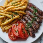 This Grilled Steak with Tomato Salad and French Fries Recipe is a timeless combination that brings the best of grilling and fresh summer flavors to your table. It’s approachable enough for a weeknight dinner yet impressive enough to share with friends. So fire up your grill, gather these simple ingredients, and create a meal that’s as satisfying as it is delicious. You’ll want to make this recipe a regular in your cooking rotation!