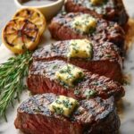 Once grilled, transfer the steaks to a warm plate and top each one generously with your homemade herb butter. Let them rest for about 5 minutes—this resting step is crucial as it allows juices to redistribute, so each bite bursts with savory moisture. Serve with optional lemon wedges for a fresh, zesty finish if you like a bit of brightness with your richness.