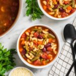 A hearty and flavorful Minestrone Soup packed with fresh vegetables, beans, and pasta, perfect for a comforting meal. This classic Italian soup is easy to prepare and simmered to perfection with aromatic herbs and spices, topped with fresh parsley and parmesan cheese for added richness.