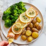 - Serve: Remove the baking sheet from the oven. Serve the salmon, potatoes, and broccoli immediately with fresh lemon wedges on the side to add a refreshing citrus flavor.