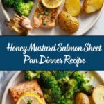 This Honey Mustard Salmon Sheet Pan Dinner is a simple, flavorful, and balanced meal that combines tender salmon filets with roasted potatoes and broccoli, all cooked together on a single sheet pan for ease and minimal cleanup. The honey mustard sauce adds a sweet and tangy glaze that perfectly complements the savory salmon and vegetables. This recipe is ideal for a quick and healthy weeknight dinner.