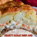 This Leftover Roast Beef, Carrot, and Creamy Potato Pie is a hearty and comforting dish that transforms leftovers into a delicious, flaky double-crust pie. Featuring layers of shredded roast beef, tender cooked carrots, and thinly sliced Yukon gold potatoes simmered in a rich, spiced cream sauce, it is topped with an optional Parmesan cheese layer and baked to golden perfection. Perfect for family dinners or to use up roast beef and vegetables, this savory pie offers a satisfying blend of textures and flavors.