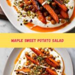 This Maple Sweet Potato Salad is a vibrant and delicious dish featuring roasted sweet potato wedges with a sweet and spicy maple glaze, crispy seasoned chickpeas, and a creamy whipped tahini yogurt sauce. Garnished with toasted pistachios and fresh coriander, this salad balances warm, smoky, sweet, and tangy flavors for a hearty side or light main.
