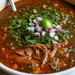 Carefully remove the beef and shred it with forks, discarding any large bones or excess fat. Return the shredded meat to the rich, spicy broth, allowing it to soak up more flavor before serving. This step is the ultimate moment where all the flavors meld into birria perfection.