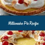 Millionaire Pie is a luscious, no-bake dessert that combines sweetened condensed milk, whipped topping, tangy lemon juice, crushed pineapple, shredded coconut, and optional pecans and cherries, layered into a crisp graham cracker crust for a refreshing, tropical-flavored treat perfect for gatherings and warm-weather enjoyment.