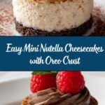 These Mini Nutella Cheesecakes are individual creamy treats featuring a crunchy Oreo crust and a rich Nutella-infused filling. Perfectly portioned for sharing, they combine the delightful flavors of chocolate-hazelnut spread with smooth cheesecake, topped optionally with whipped cream and chopped hazelnuts for extra indulgence.