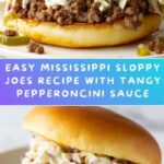Mississippi Sloppy Joes are a flavorful twist on the classic sloppy joe sandwich, featuring lean ground beef cooked with ranch and au jus seasonings, butter, garlic powder, and tangy pepperoncini peppers. This savory mixture is simmered until saucy and served on toasted buns, optionally topped with coleslaw, mayo, and sweet pickles for added crunch and zest.