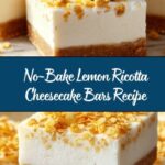 I simply cannot recommend the No-Bake Lemon Ricotta Cheesecake Bars Recipe enough — it’s one of those delightful desserts that feels fancy but comes together effortlessly. Whether you’re making it for a family gathering, a special celebration, or just because, it’s sure to earn rave reviews and happy smiles. Give it a try and enjoy every bright, creamy bite!