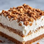 Once your cheesecake has set, it’s time to add that iconic marshmallow layer. In a small bowl, combine marshmallow fluff with powdered sugar, softened butter, and a touch of vanilla extract until it’s smooth and spreadable. Gently spread this fluffy marshmallow mixture over the chilled cheesecake layer, creating a beautiful, light topping that echoes the classic oatmeal cream pie experience. This final layer adds a cloud-like sweetness and texture that takes the dessert to the next level.