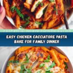 Serve your One Dish Easy Chicken Cacciatore Pasta Bake Recipe family-style right from the casserole dish, encouraging everyone to scoop their favorites. Alternatively, present individual portions in small ramekins for a charming, restaurant-style experience at home that impresses guests.