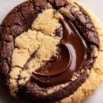 Delight in these Peanut Butter Brownie Swirl Cookies, combining rich brownie mix flavors with creamy peanut butter for a perfectly chewy and decadent treat. With a golden edge and slightly cracked top, these cookies offer a delicious twist on classic brownies, enhanced by optional chocolate chips for extra indulgence.