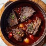 This Perfect Pot Roast recipe delivers a tender, flavorful chuck roast braised low and slow in a rich mixture of beef broth, red wine, and aromatic herbs. Seared to lock in juices and cooked in a Dutch oven with hearty vegetables like carrots, celery, and onions, this classic American main course offers melt-in-your-mouth beef with a savory pan gravy, perfect for a comforting family meal.