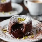 9. Garnish and Serve: Sprinkle the cakes with crushed pistachios for added texture and nutty flavor. Serve immediately while warm and gooey for the best molten lava experience.