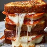 This Pizza Grilled Cheese Sandwich is a delicious fusion of classic grilled cheese and your favorite pizza flavors. Featuring Italian bread layered with mozzarella, marinara sauce, and optional pepperoni or sausage, it’s a quick and satisfying meal perfect for lunch or a snack. Cooked on a skillet until golden brown and melty, it’s served with extra pizza sauce for dipping and can be customized with your favorite pizza toppings.