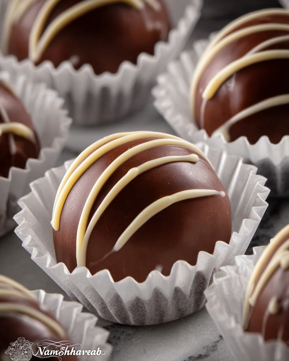 These truffles pair wonderfully with a cup of strong black tea or a rich coffee. A small serving of fresh berries can also complement the sweetness and add a refreshing balance to the richness.