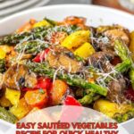 A vibrant and healthy Sautéed Vegetables recipe featuring a colorful medley of fresh carrots, zucchini, yellow squash, red bell pepper, asparagus, mushrooms, and onions, all seasoned with herbs and spices and finished with a sprinkle of Parmesan cheese. This quick and easy side dish is perfect for any meal and packed with flavor and nutrients.