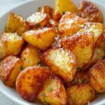 In a large bowl, combine your chopped potatoes with olive oil, minced garlic, salt, and pepper. Tossing them well ensures every bite is packed with flavor and that the potatoes roast up irresistibly crispy.