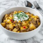 To take your Slow Cooker Cowboy Casserole Recipe from great to unforgettable, garnish with a swirl of cool sour cream and a sprinkle of fresh chopped chives. The sour cream introduces a lovely tang that complements the smoky, savory casserole, while the chives add a pop of color and subtle onion flavor that makes every bite vibrant and lively.