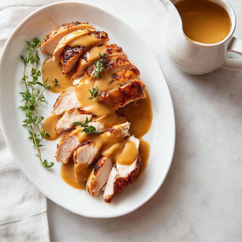 Finally, slice your juicy turkey breast and plate it with a generous ladle of that savory gravy. The combination of crispy skin, tender meat, and luscious sauce is truly irresistible!
