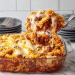 This Sour Cream Noodle Bake is a comforting and hearty casserole featuring layers of tender egg noodles mixed with a creamy sour cream and cottage cheese blend, savory ground beef simmered in marinara sauce, and melted cheddar and Monterey Jack cheese. Perfect for a family dinner, this baked dish combines rich flavors and satisfying textures in a simple, easy-to-follow recipe.