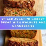 This Spiced Zucchini Carrot Bread is a moist, flavorful loaf packed with warm spices, shredded zucchini and carrot, crunchy walnuts, and sweet dried cranberries. Perfect as a wholesome snack or breakfast treat, it combines the natural sweetness of orange zest with comforting cinnamon and nutmeg, making it a deliciously balanced quick bread that can also be baked into muffins.