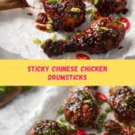 Enjoy these flavorful Sticky Chicken Drumsticks glazed with a sweet and tangy Chinese plum sauce. Marinated in a mixture of plum sauce, brown sugar, soy sauce, hoisin, garlic, ginger, and Chinese five spice, these drumsticks bake to tender, sticky perfection and are garnished with toasted sesame seeds and fresh scallions, making an irresistible appetizer or main dish.