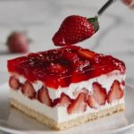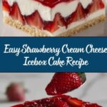 This Strawberry Cream Cheese Icebox Cake is a no-bake, layered dessert featuring creamy sweetened cream cheese filling, fresh strawberries, and crunchy graham crackers. Perfectly chilled to develop a cake-like texture, it’s an easy and refreshing dessert ideal for summer or any occasion where a quick yet elegant sweet treat is desired.