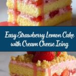 Strawberry Lemon Crunch Cake Slice with Strawberry Red Cream Cheese Icing Recipe