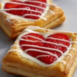 Delightfully flaky and sweet, these Strawberry Puff Pastry Hearts are perfect for a romantic breakfast, a charming dessert, or a special treat any time of day. Made with crisp puff pastry filled with luscious strawberry jam and finished with a golden egg wash and a dusting of powdered sugar, these heart-shaped pastries are as delightful to behold as they are delicious to eat.
