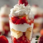 - Assemble the Parfaits: In serving glasses or jars, layer cake cubes, macerated strawberries with their juices, and whipped cream. Repeat the layers until the glasses are filled, finishing with a dollop of whipped cream and a few strawberry slices on top for garnish.