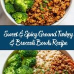 These Sweet & Spicy Ground Turkey & Broccoli Bowls are a quick and flavorful meal perfect for busy weeknights. Ground turkey is cooked to juicy perfection and simmered in a tangy sauce made from sweet chili sauce, honey, Sriracha, soy sauce, sesame oil, garlic, and ginger. Steamed broccoli and fluffy cooked brown rice complete this balanced bowl, which can be garnished with sesame seeds and green onions for an added crunch and freshness.