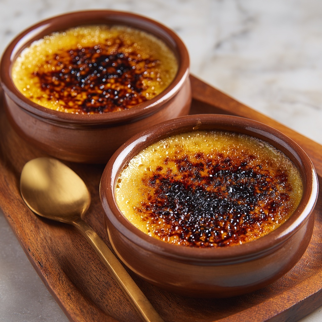 Before serving, sprinkle an even layer of granulated sugar atop each custard. Use a kitchen torch to melt and caramelize the sugar until it forms a crisp, golden crust. This delightful contrast between crunchy topping and smooth custard is what makes this dish truly unforgettable.