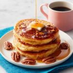 To really bring out the flavors, top your pancakes with a pat of melting butter, a generous scattering of toasted pecans for crunch, and a drizzle of pure maple syrup. The contrast of creamy, crunchy, and sweet makes every bite exciting and satisfying.