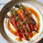 - Assemble the dish: Spread the whipped yogurt evenly on a serving dish or platter. Arrange the glazed carrots beautifully on top of the yogurt, creating an appealing presentation.