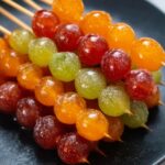 Display Tanghulu skewers upright by arranging them in a decorative jar or a stylish vase filled with uncooked rice or colorful beads to keep them standing up. You can also create small skewers bouquets by grouping different fruits together on a platter to wow guests at parties or special occasions. This playful presentation will make your Tanghulu irresistible from the first glance.