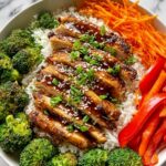 Want to impress your guests? Serve the Teriyaki Chicken Bowls Recipe in wide, shallow bowls that show off the layers of rice, chicken, and vibrant veggies. You can also offer extra toppings such as shredded nori, chopped peanuts, or fresh cilantro on the side for a customizable experience that everyone will enjoy making their own.