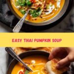 A rich and creamy Thai Coconut Pumpkin Soup that combines the sweetness of pumpkin with the bold flavors of Thai red curry and coconut milk. This vibrant, comforting soup is easy to make and perfect for dipping with flaky pan-fried roti, delivering a deliciously satisfying meal with a hint of spice and fresh garnishes.
