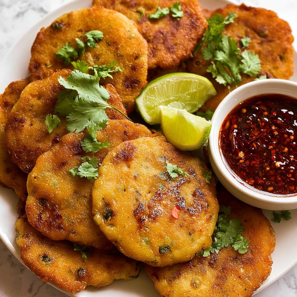 Fresh cilantro leaves sprinkled over the top add a burst of herbal brightness, while lime wedges on the side let everyone squeeze in just the right amount of zesty citrus. Both garnishes elevate the fish cakes with contrasting freshness that feels essential.