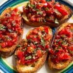 A fresh and vibrant Italian appetizer featuring toasted baguette slices topped with a flavorful mixture of ripe tomatoes, red onion, garlic, and basil, enhanced by balsamic vinegar and extra virgin olive oil. Perfect for a light snack or party starter, ready in just 20 minutes.