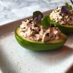 Since avocado browns quickly, it’s best to prepare the components separately and combine them just before eating. Prepare the tuna filling in advance, but stuff the avocado at serving time for optimal freshness and appearance.