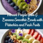 Vibrant Purple Yam & Banana Smoothie Bowls with Pistachios and Fresh Fruits Recipe