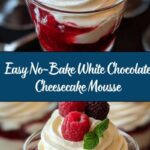 This White Chocolate Cheesecake Mousse with Raspberry Compote is a luscious no-bake dessert featuring a creamy, fluffy white chocolate cheesecake mousse paired with a tangy and sweet raspberry compote. Perfect for elegant gatherings or a decadent treat, it requires minimal cooking and can be prepared ahead of time.