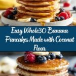 These Whole30 Banana Pancakes are a delicious, grain-free breakfast option made with ripe bananas, eggs, and coconut flour. They are naturally sweetened, gluten-free, and perfect for a healthy start to your day or a quick snack. Fluffy and flavorful, they suit a Whole30 diet and can be customized with your favorite toppings.